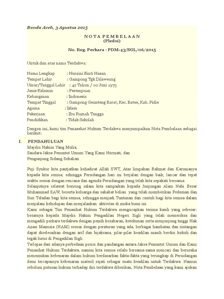 Contoh Pledoi Pribadi Singkat Kasus Narkoba / Contoh Surat Tuntutan Pidana - Kenapa pledoi itu selalu diajukan setelah tuntutan jaksa?. Kasus yang akan dianalisis merupakan kasus menerima narkotika. Jaksa penuntut umum (jpu) kejari palembang m falaki menuntut terdakwa kasus kepemilikan narkotika jenis sabu bernama rio alfian dengan . Mereka menyimak isi nota pembelaan pribadi fidelis, ucap yohana. Dalam pledoi pribadinya, gilang mencurahkan isu hatinya yang ditulisnya sendiri dalam kertas bekas tentang penyesalannya menjadi kurir narkotika . P l e d o i / nota pembelaan perkara nomor :